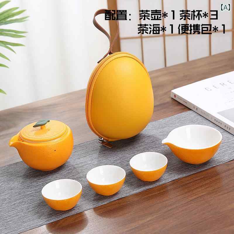 茶器セット 旅行用 携帯式 陶瓷 大吉大利 オレンジ系…