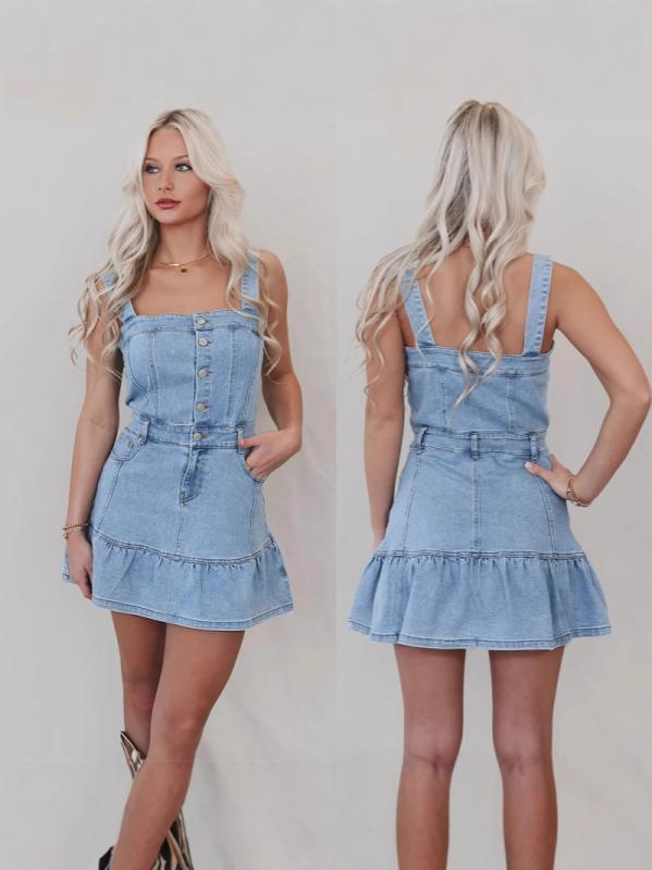 デニムワンピース ワンピ春 ノースリーブ 大人サロペット…