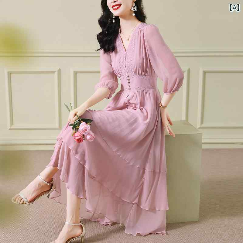 ワンピース 夏ドレス Vネック 夏 七分袖 ゆったり マ…