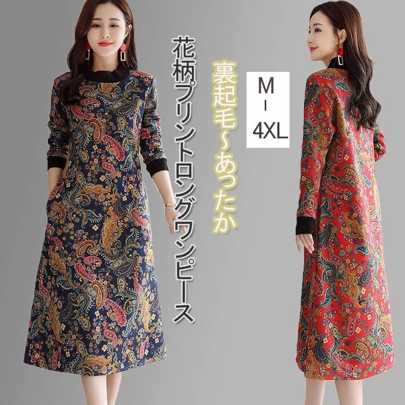 裏起毛 ロングワンピース レディース ハイネック 長袖 …