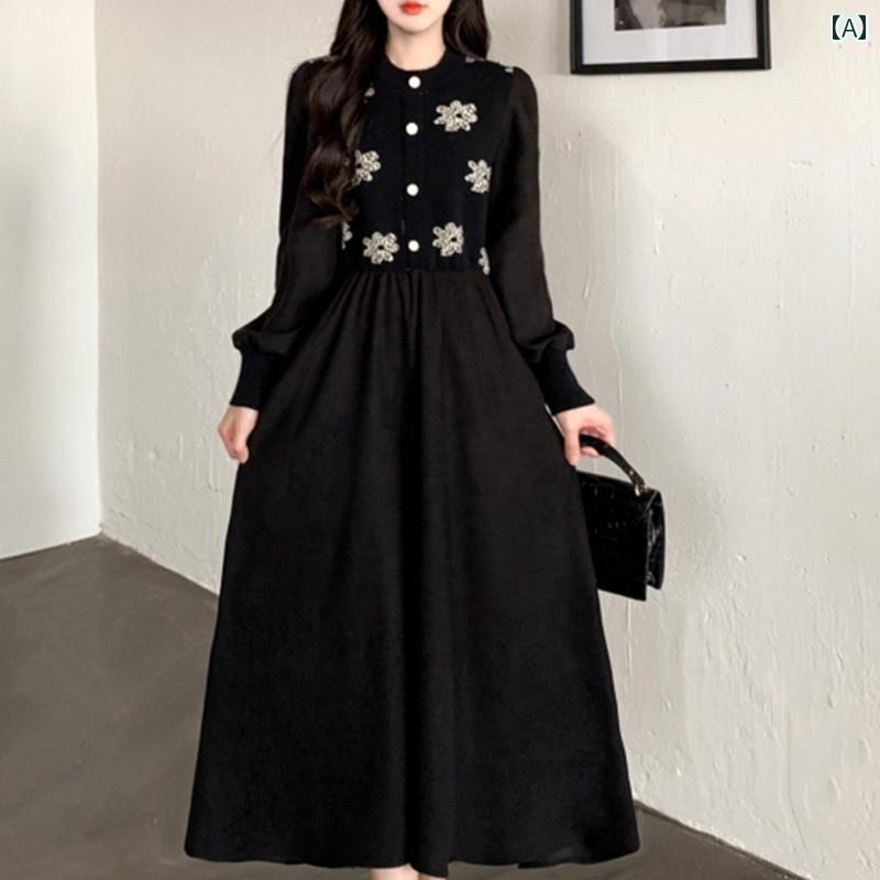 ワンピース ドレス ロングスカート Aラインドレス 秋冬…