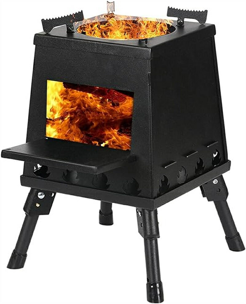 薪ストーブ 折りたたみ キャンプ 3面の耐熱ガラス・煙突…