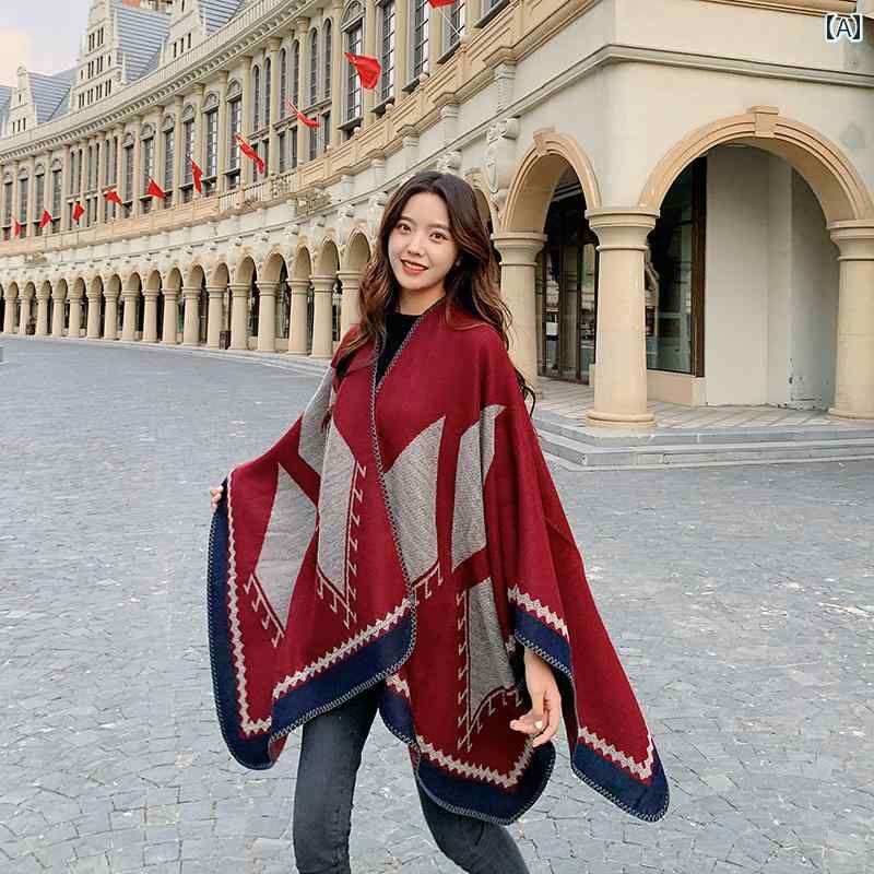 豪華 コントラスト ウール ケープ ショール レディース…