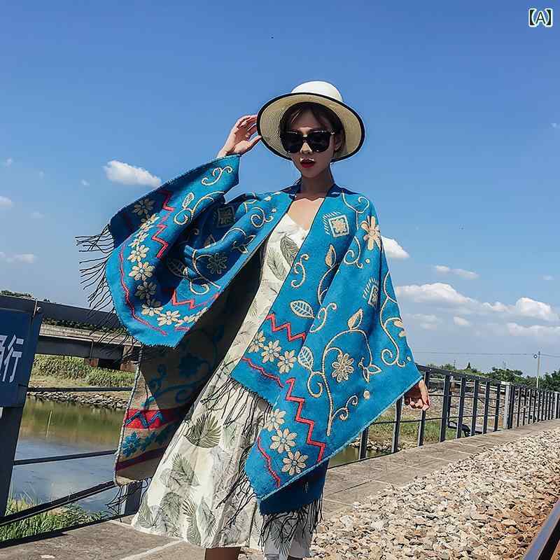 レディース フード スカーフ マント 保温 エスニック …