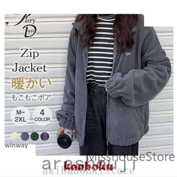ジャケットブルゾンミドル丈無地フリースジャケットもこもこ…