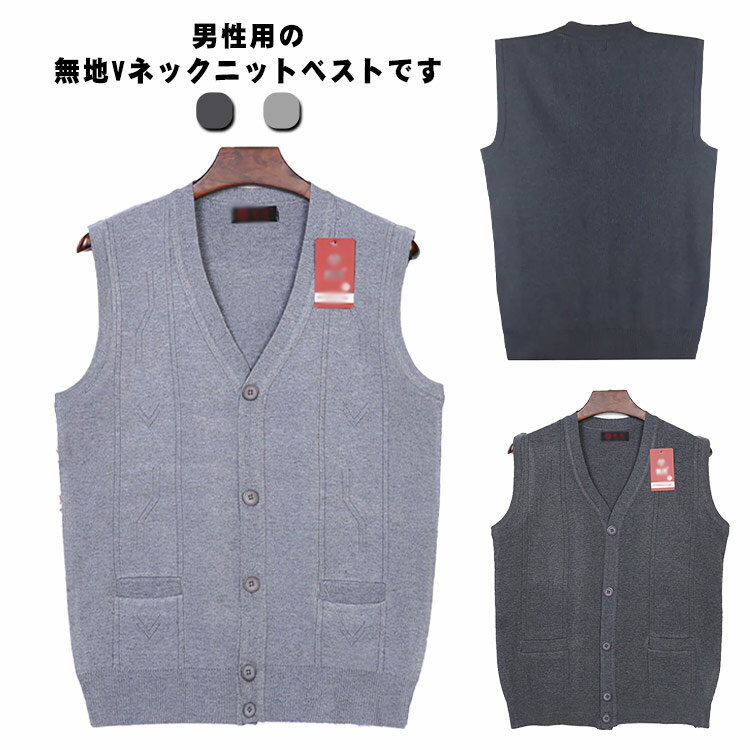 ニットベスト メンズ ジレ 前開き 春秋冬 チョッキ 暖…