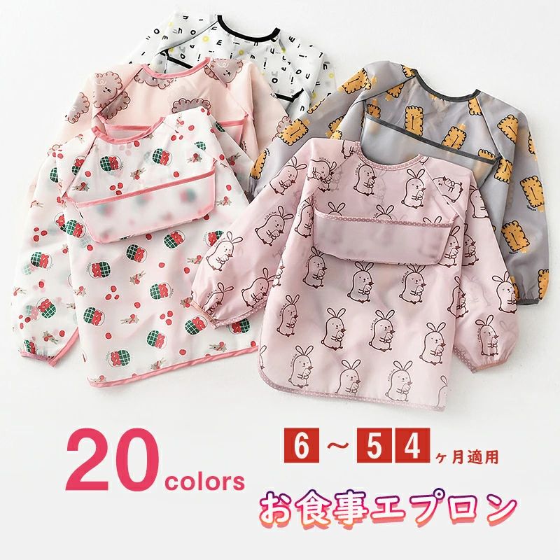 送料無料 お食事エプロン 長袖 ベビー 離乳食 袖付きエ…