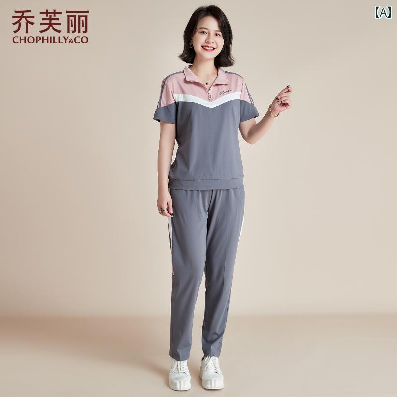 レディース カジュアル ウェア 中年 母親の 夏の スポ…