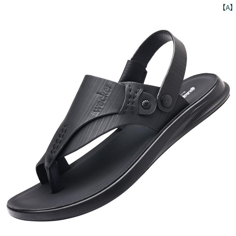 男性用 本革製 鼻緒付きサンダル 天然皮革 トングタイプ…
