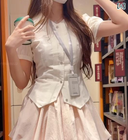 シャツ レディース 半袖 白 ブラウス トップス ポロ襟…