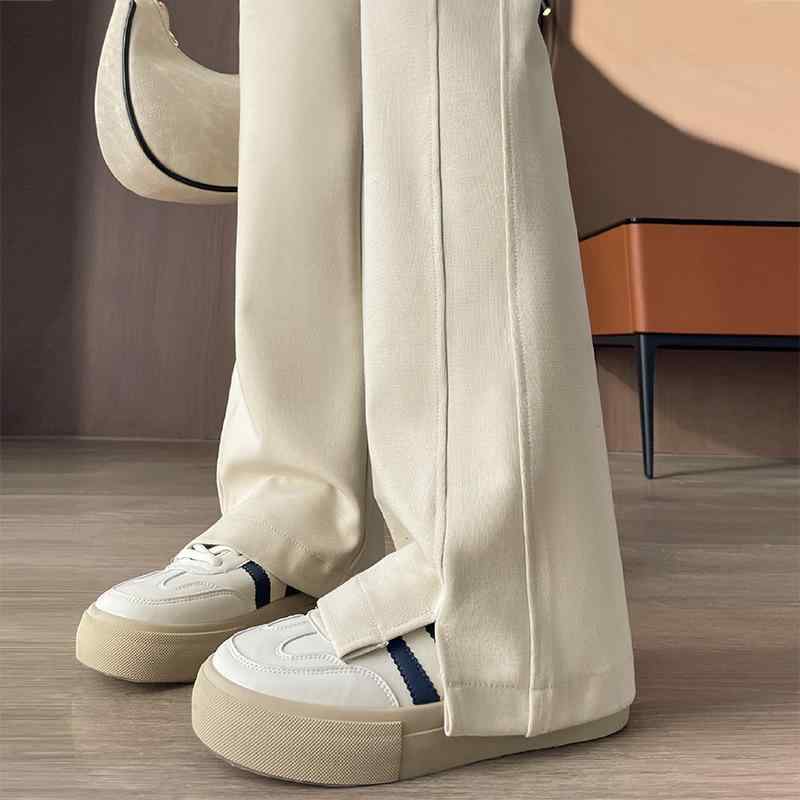 パンツ レディース 春夏 高腰 伸縮性 裾スリット入り …