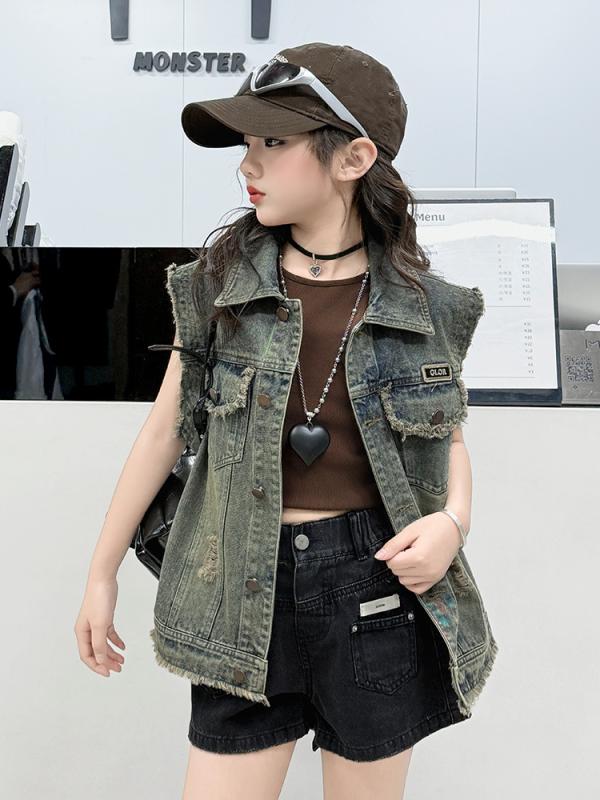子供服 デニムベスト 春秋 女の子 中大サイズ ゆったり…