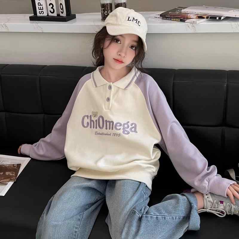 子供服 トレーナー 春秋 長袖 デニム襟付き ポロシャツ…
