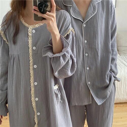 ペアパジャマ カップル 長袖 上下セット 秋冬 前開き …