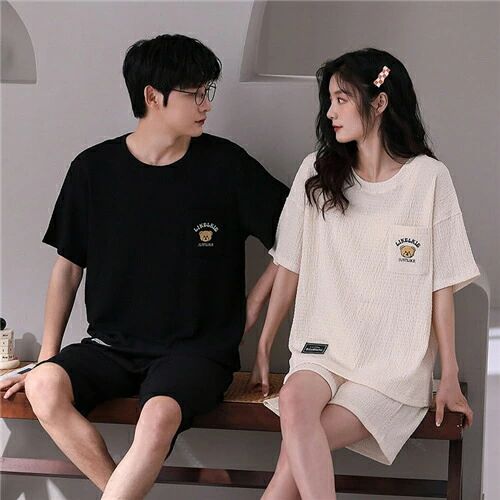 ペア パジャマ 半袖 夏 ベージュ ブラック クマ レデ…