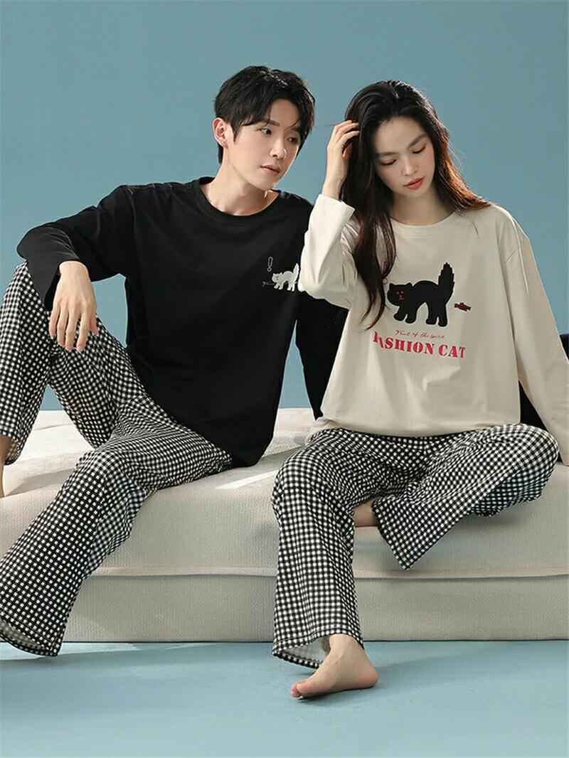 ペア パジャマ 長袖 男女2着 セット 綿100% 猫 …