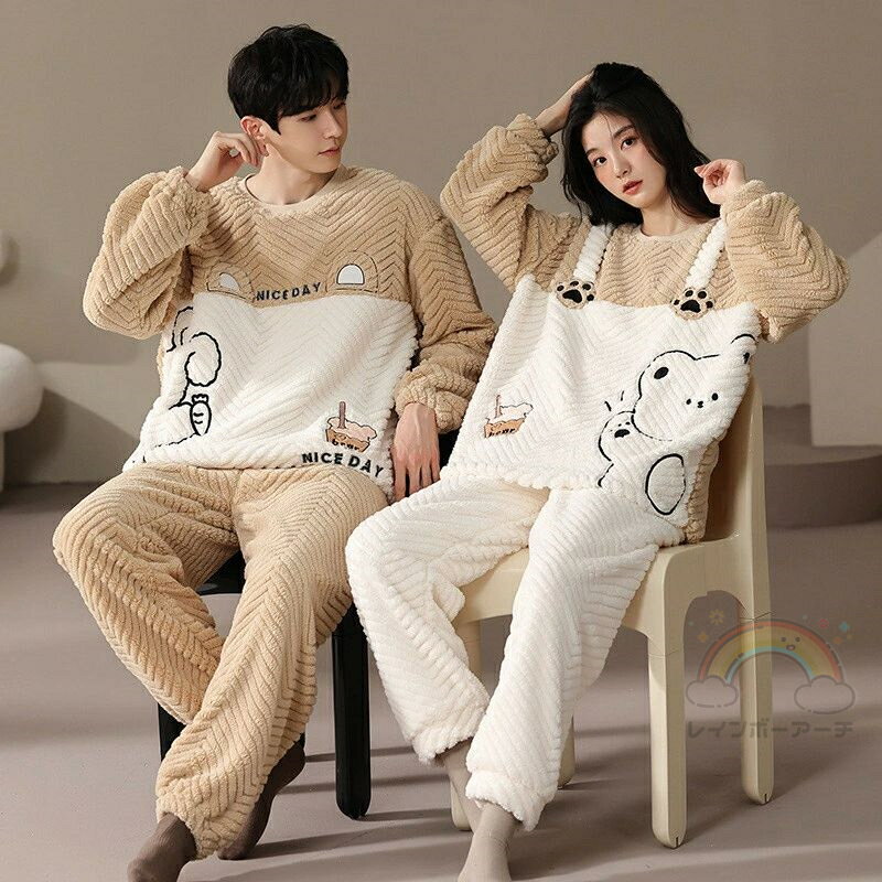 ペアパジャマ もこもこ 冬 男女2着 セット 厚手 裏起…