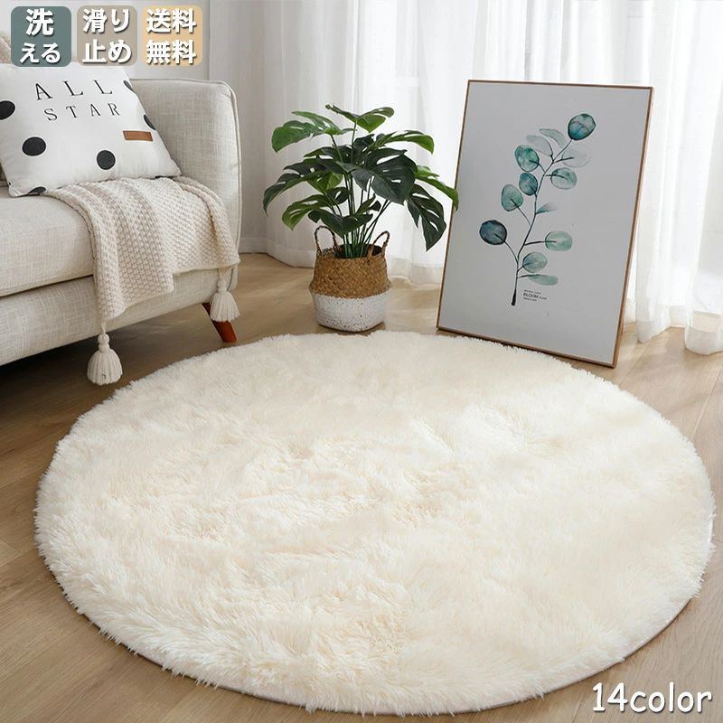 円型 ラグマット 洗える 直径200cm 滑り止め付 絨…